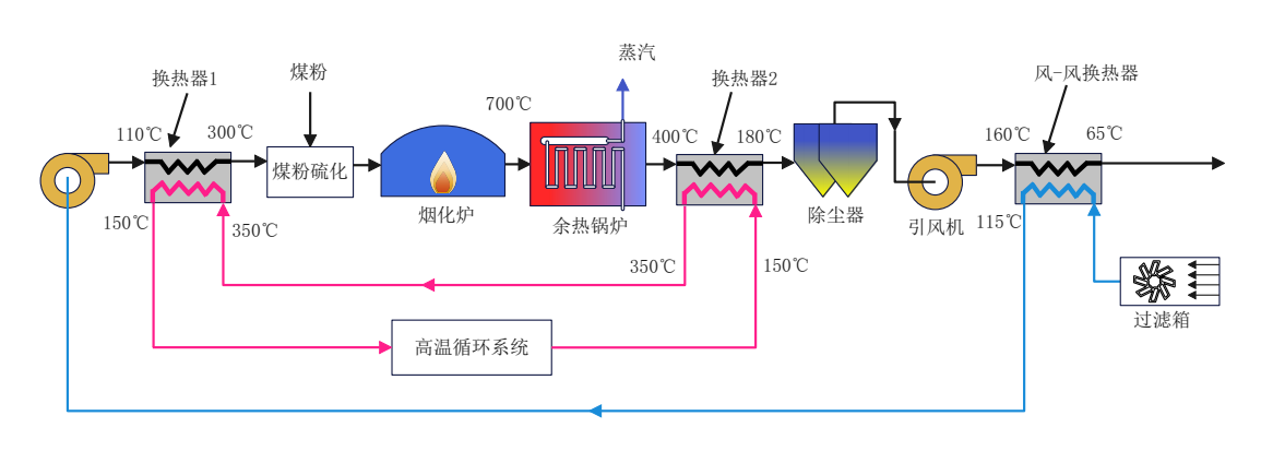 煙氣余熱深度回收:通過(guò)高效換熱器將90-150℃煙氣降溫至露點(diǎn)以下,回收的熱量用于加熱工藝用水或空氣。