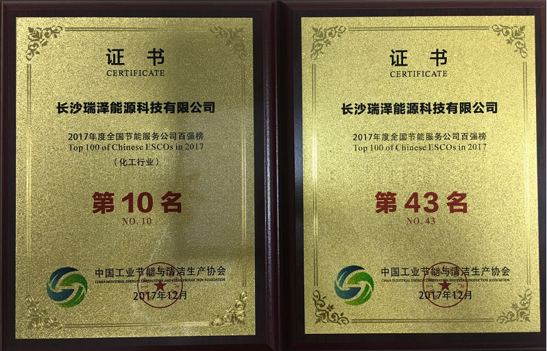 近日,“2017年度全國節(jié)能服務(wù)公司百強榜”名單出爐,瑞澤能源再次入選,并被評入選“全國節(jié)能服務(wù)公司化工行業(yè)前10名”。