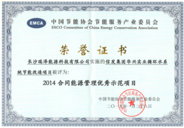 近日,在中國節(jié)能協(xié)會節(jié)能服務(wù)產(chǎn)業(yè)委員會(EMCA)展開了2014年度節(jié)能服務(wù)產(chǎn)業(yè)評優(yōu)活動中,我公司實施改造的信發(fā)集團循環(huán)水節(jié)系統(tǒng)節(jié)能改造項目年節(jié)電量高,社會及環(huán)境效益顯著,被評為合同能源管理優(yōu)秀示范項目,這不僅使我公司得到良好的宣傳,更是對我公司循環(huán)水系統(tǒng)節(jié)能改造技術(shù)實力的肯定。