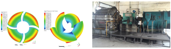 工程實(shí)施:先進(jìn)行系統(tǒng)及管網(wǎng)優(yōu)化,消除系統(tǒng)損耗,再進(jìn)一步提高風(fēng)機(jī)本身的效率,更換高效節(jié)能風(fēng)機(jī)或更換葉輪。根據(jù)實(shí)際工況需求,基于三元流葉輪理論和空氣動(dòng)力學(xué)理論重新設(shè)計(jì)風(fēng)機(jī)葉片和風(fēng)機(jī)蝸殼流道,通過(guò)CFD分析軟件對(duì)風(fēng)機(jī)葉輪模型進(jìn)行修正,使其流態(tài)更穩(wěn)定,效率更高。風(fēng)機(jī)進(jìn)口采用分流技術(shù),風(fēng)機(jī)流道采用導(dǎo)流套,降低風(fēng)阻和渦流,轉(zhuǎn)子部件采用精密加工,進(jìn)一步提高效率。